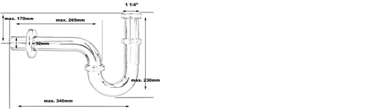 MS Röhrengeruchsverschluss Messing verchromt mit Rosette 80mm, Verstellrohr 120mm, Abgangsbogen 250mm.