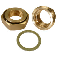 Mit beidseitigem Innengewinde, dreiteilige Verschraubung flach dichtend.